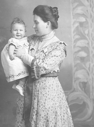 | Julie Heinrich 1904 Julie Merkel, geb. Keller, mit Sohn Heinrich bei dessen Taufe 1904