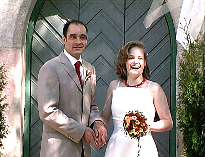 | Paar vor Kirche Bettina und Santiago nach Trauung vor Kirche