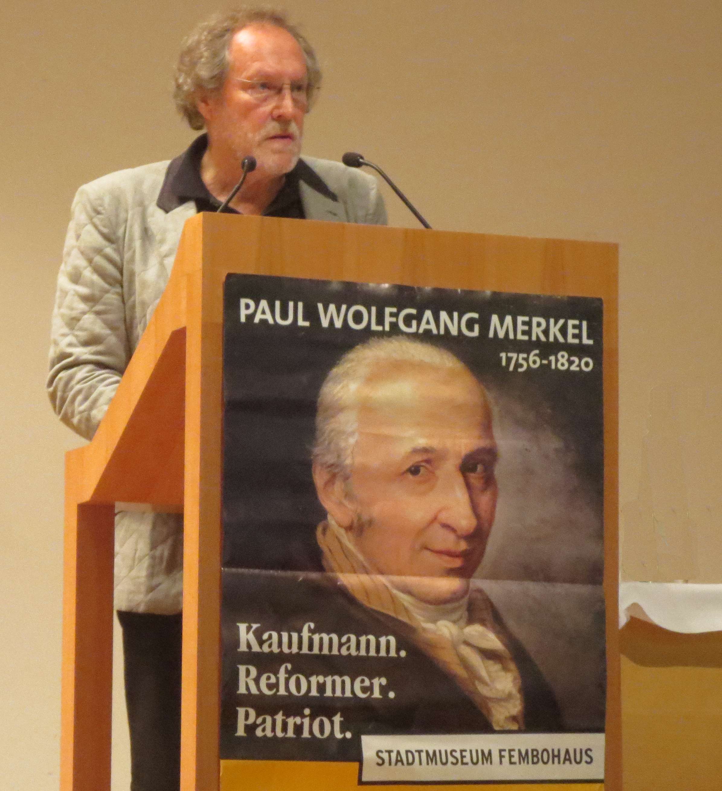 Stationen des Lebens von Paul Wolfgang Merkel Paul Wolfgang Merkel war die bedeutendste Persönlichkeit Nürnbergs um 1800. Am 1. April 2006 jährt sich sein Geburtstag zum 250. Mal. Brennpunktartig spiegeln sich in der Person Merkels die politischen, wirtschaftlichen, gesellschaftlichen und sozialen Veränderungen jener Epoche. Er ist eine Schlüsselfigur des Umbruchs um 1800: Als Kaufmann führte er sein Unternehmen allen politischen Wirrungen zum Trotz zu großem geschäftlichen Erfolg; als Marktvorsteher und Vorstand der „Gesellschaft zur Beförderung der vaterländischen Industrie“ machte er seinen großen Einfluss geltend, um notwendige politische und wirtschaftliche Reformen voranzubringen; als erster Abgeordneter Nürnbergs im bayerischen Landtag von 1819 setzte er sich erfolgreich für die Belange seiner Heimatstadt ein, nämlich die Schuldenregelung und die wirtschaftlichen Genesung durch die Reformierung des Zollwesens. Durch seine Mitgliedschaft in zahlreichen Gesellschaftsvereinen nahm Merkel auch am gesellschaftlichen Leben regen Anteil. Seiner Verbundenheit zu Nürnberg verdankt die Stadt die Bewahrung vieler Kunstschätze, die durch die 1858 begründete Merkelsche Familienstiftung erhalten geblieben sind
